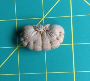 Cut a small circle out of double layered pantyhose and using a running stitch, stitch around the outer edge leaving the threads long so that you can draw them up after adding the stuffing.
