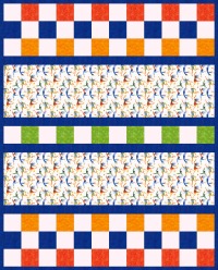 Joannes Designs Week14 'Checkers Quilt' a design I created to showcase your favourite large fun print fabric. So often when I go fabric shopping for my next quilt I use the smaller print fabrics. But I've noticed there are a fabulous range of large print fabrics or fabrics with repeat scenes on them.