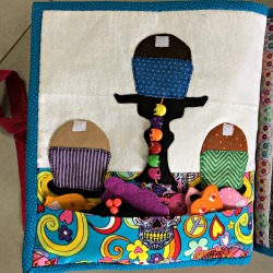 I have added a few detailed photos of the completed book, showing how it is assembled at the bottom of this page. You will see that this book can have each of its pages removed from the book due to each page having velcro sewn into it during construction. This means that it becomes very versatile allowing for pages to be added, swapped etc and also any repairs can be undertaken more easily.