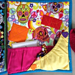 We sourced a range of sugar skull fabrics to start with and then began creating the pages.